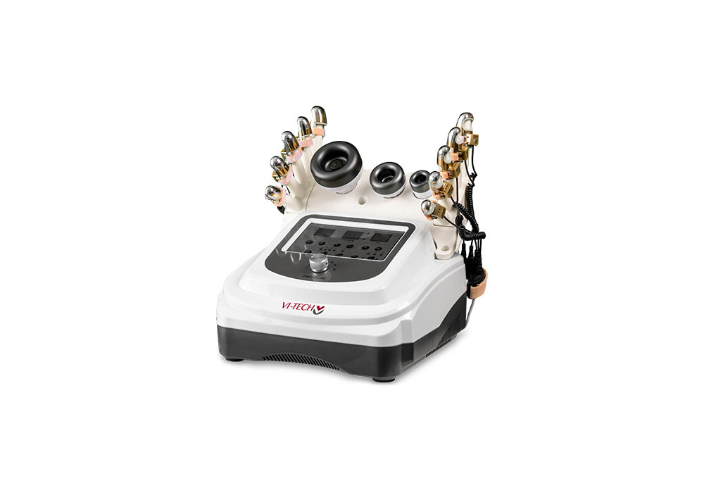 Strumento innovativo in campo estetico concepito per racchiudere i benefici di 5 diverse tecnologie in un unico dispositivo. La combinazione di MASSAGGIO A RULLI, RADIOFREQUENZA, VACUUM, LED e INFRAROSSI, esercitata attraverso l'azione di 4 manipoli concepiti per le differenti aree del corpo, garantisce la massima efficacia nel trattamento di cellulite, senescenza cutanea e rimodellamento corpo.